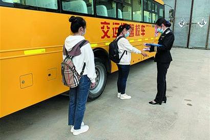 乘車學生逐一測體溫。 城運控股交運西海岸溫馨校車承擔著西海岸上千學生的上下學接送工作。 9日,該公司在校車停車場開展疫情防控專項演練。本次疫情防控演練采用現場......